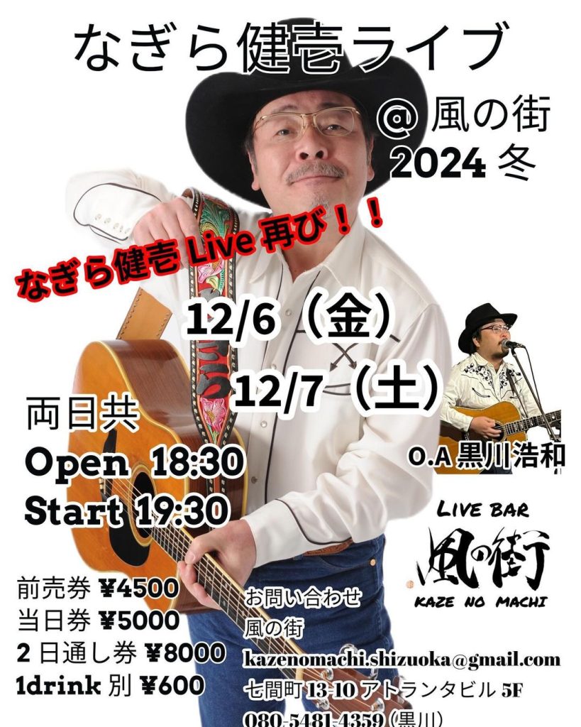 なぎら健壱ライブ@風の街 2024冬 お知らせ 2024.09.242024.11.12 12/612/7となぎらさんのLive決まりました!! 今回久々にO.Aやらせていただきます!! ご予約はお早めに^ – ^